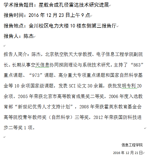 学术报告:星载合成孔径雷达技术研究进展