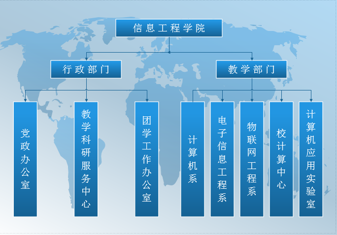 学院下设党政办公室、教学科研服务中心、团学工作办公室3个行政部门,设有计算机系、电子信息工程系、物联网工程系、校计算中心、计算机应用实验室5个教学部门。